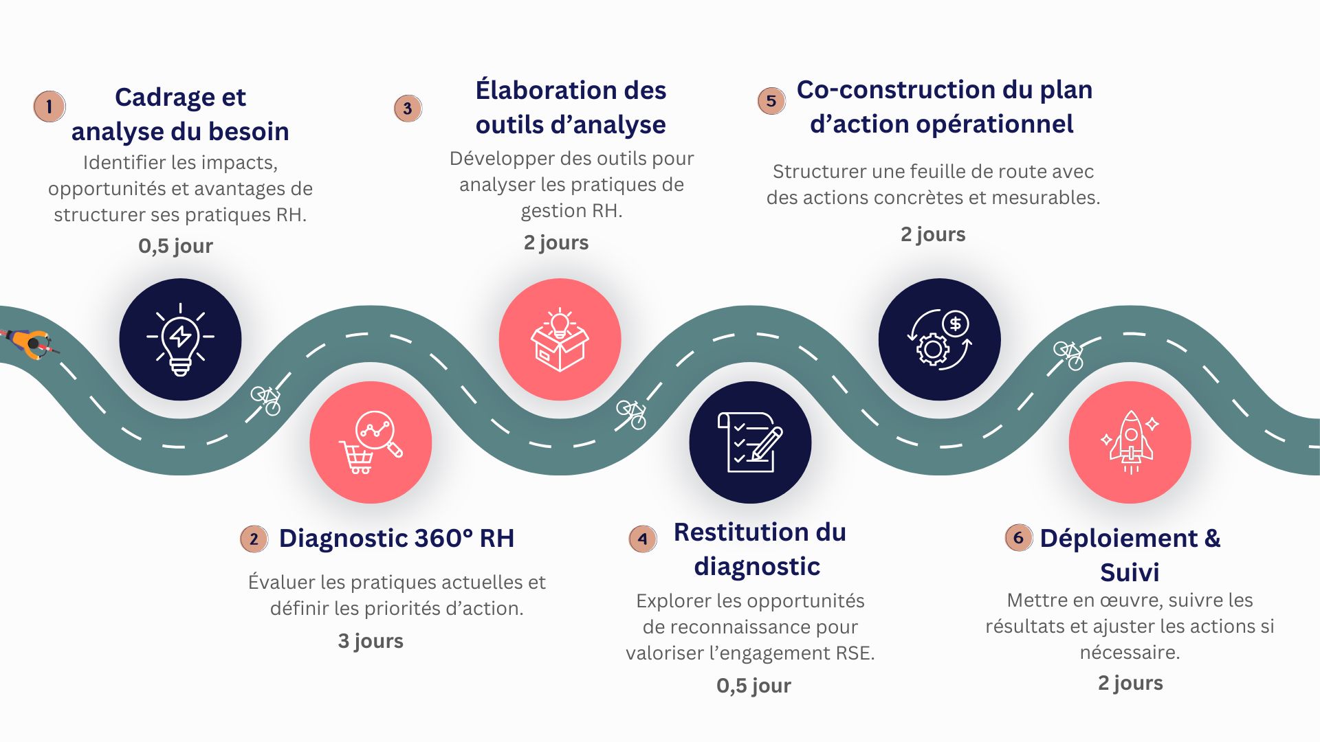 La modularité du dispositif permet d’intervenir sur tout ou partie du parcours, selon les besoins, les ressources disponibles et le rythme de l’entreprise.